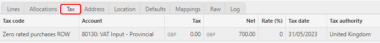 - The Tax Code will always be populated with the default Tax Code from the Supplier. If any Tax Code differs in the document, then it will be up to the user to make appropriate changes to reflect these differences.