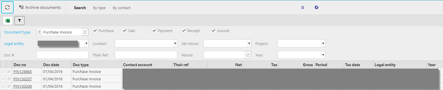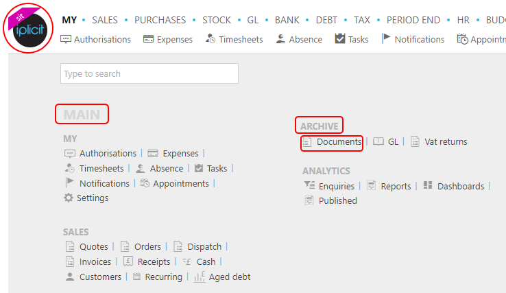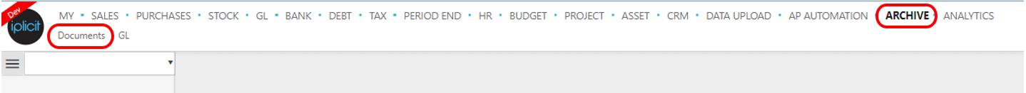or from the Main Menu select Archive then Documents -