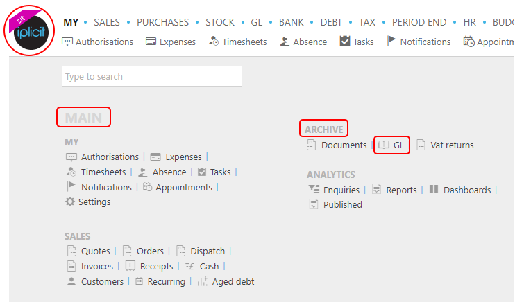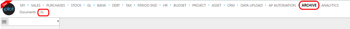 or enter Archive GL in the Quick Launch Side Menu.