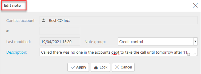 Each note is assigned to a note group, the main panel can be filtered to display note groups. If necessary the note can be Edited by clicking on it to open, once completed selecting Apply will update the note.