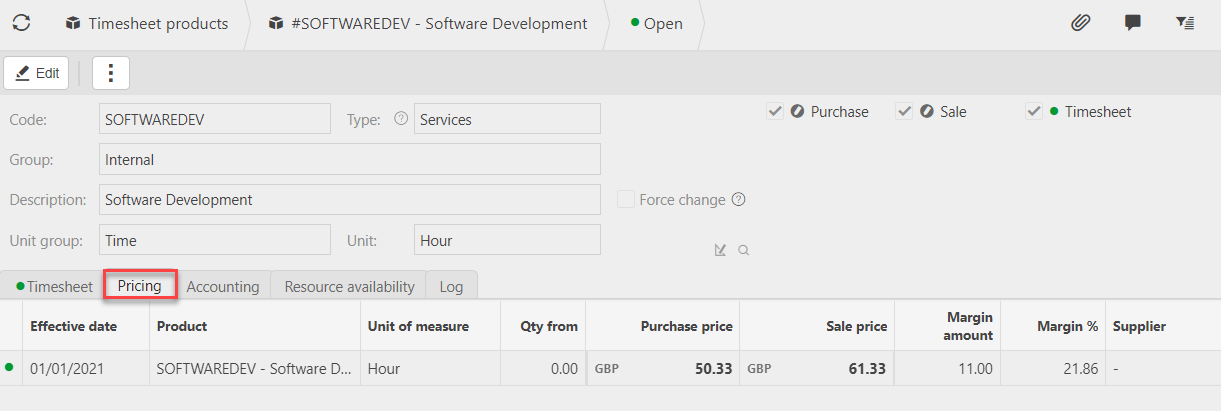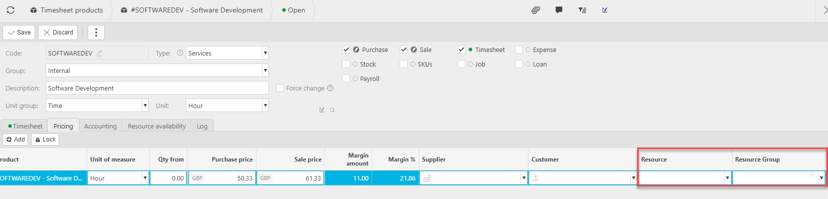 - Timesheet product pricing can now also be setup by Resource Group. This supports reduced price maintenance.