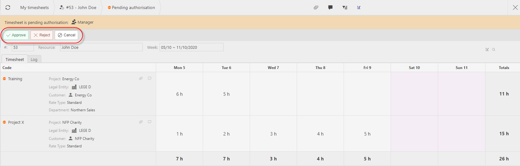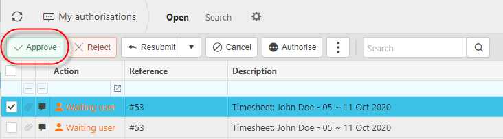 - If you have not setup an Authorisation Workflows the timesheet will automatically convert to an approved status.