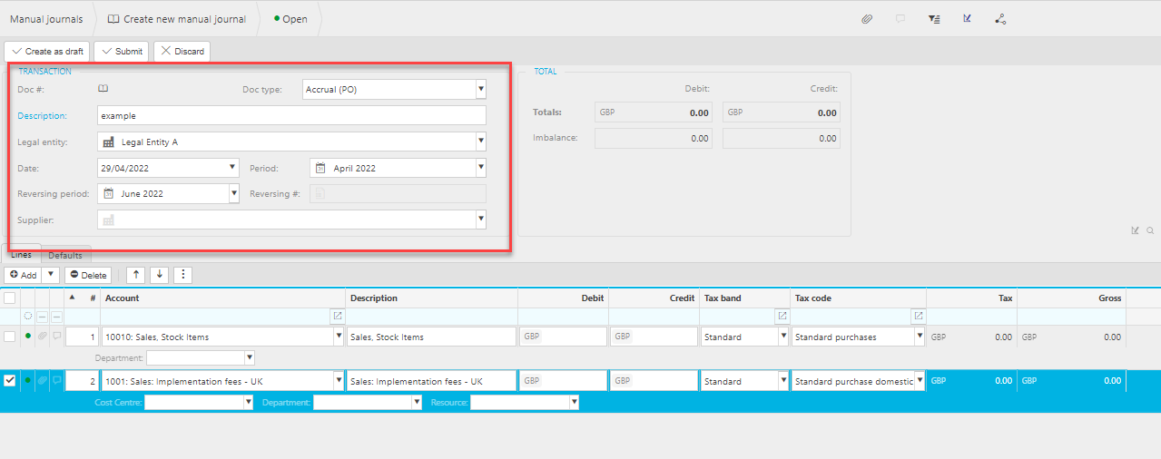 - Legal entity:This will be the legal entity that the accrual is being posted for.