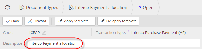 Set Environment default document type(s) for the Interco payment and Interco payment allocation