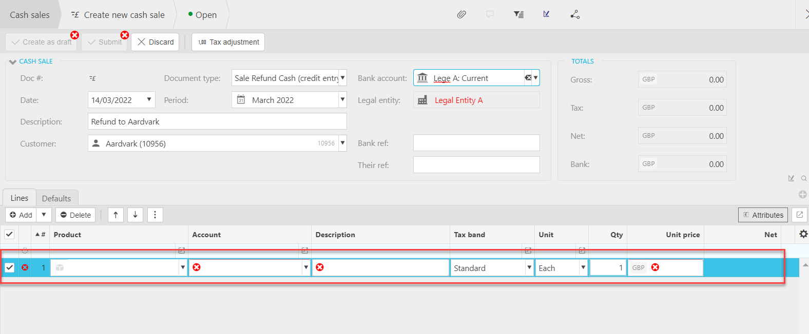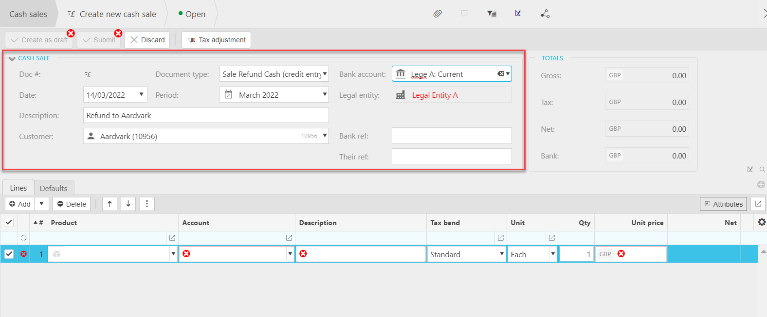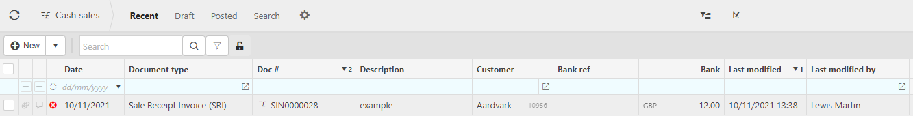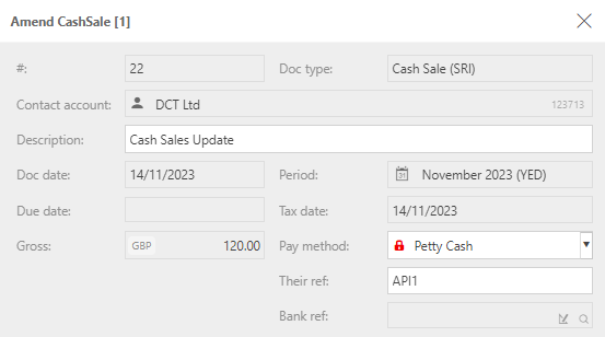 - Bank ref: This will be used to identify the cash sale in your bank account.