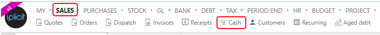 or from the Main Menu select Sales then Cash -