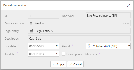 Period correction to make corrections to the Period.