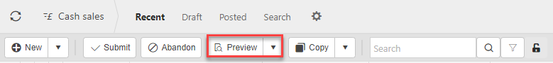Select the cash sale that you would like to preview.