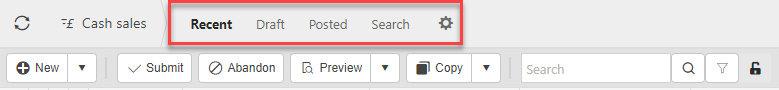 This will then show the Cash sales on the system where normal customisation of Sets can be used. Also, depending on User roles, the My/All option will be showing.