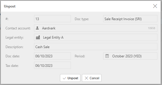 Select Unpost to proceed.