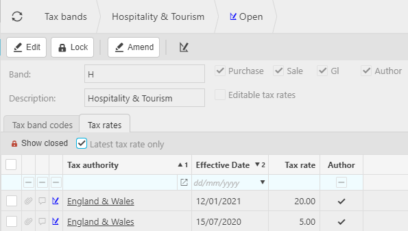 Tick the Latest tax rate only check box to restrict the rates shown to be the latest only.